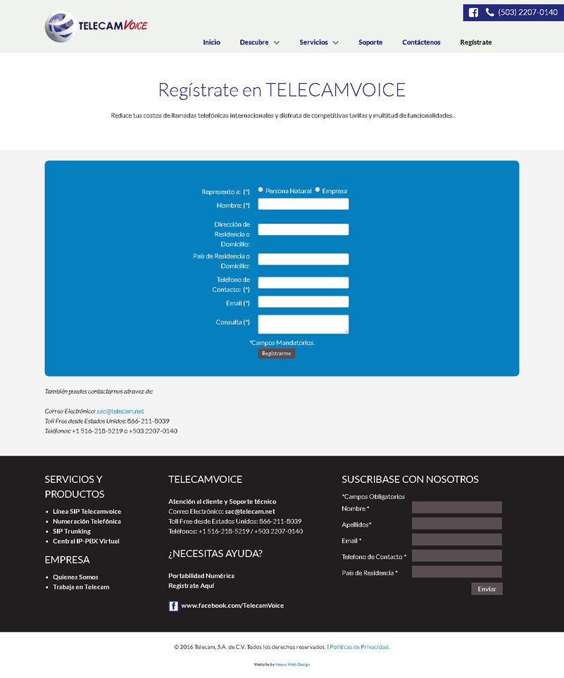 Se utilizó un look fresco y moderno acorde a los servicios ofrecidos por TELECAM VOICE.