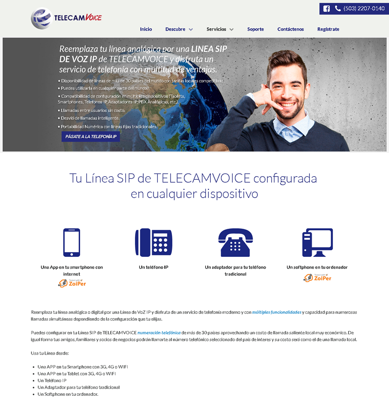 Se utilizó un look fresco y moderno acorde a los servicios ofrecidos por TELECAM VOICE.